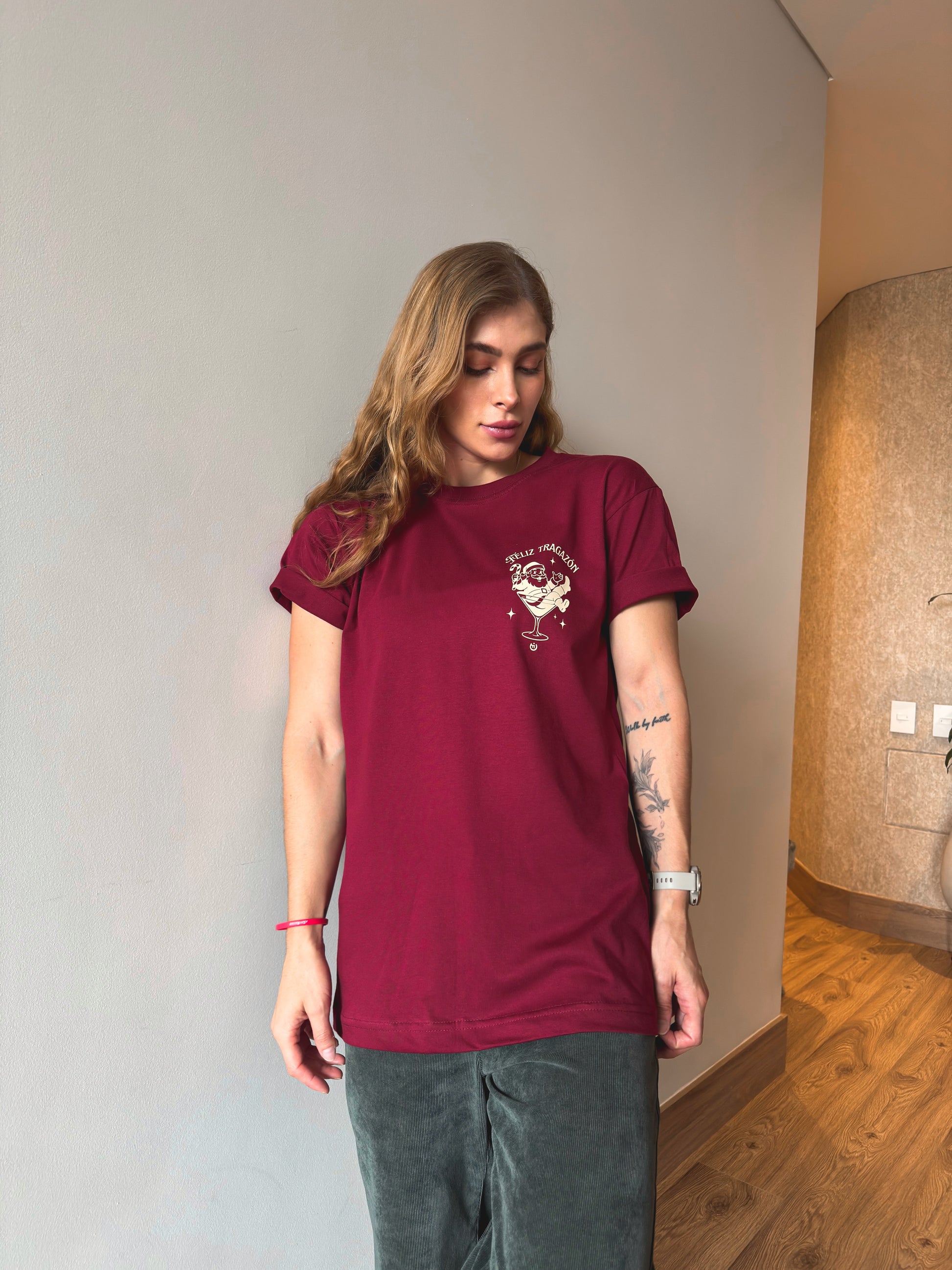 Camiseta CF Feliz Tragazón Edición Navidad Vino tinto Mujer